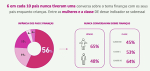 Mesmo nunca tendo conversado sobre dinheiro na infância, 8 em cada 10 pais dizem que falam com seus filhos sobre dinheiro e que o assunto é introduzido, principalmente, quando é necessário dizer ao filho que não é possível comprar algo porque é muito caro.